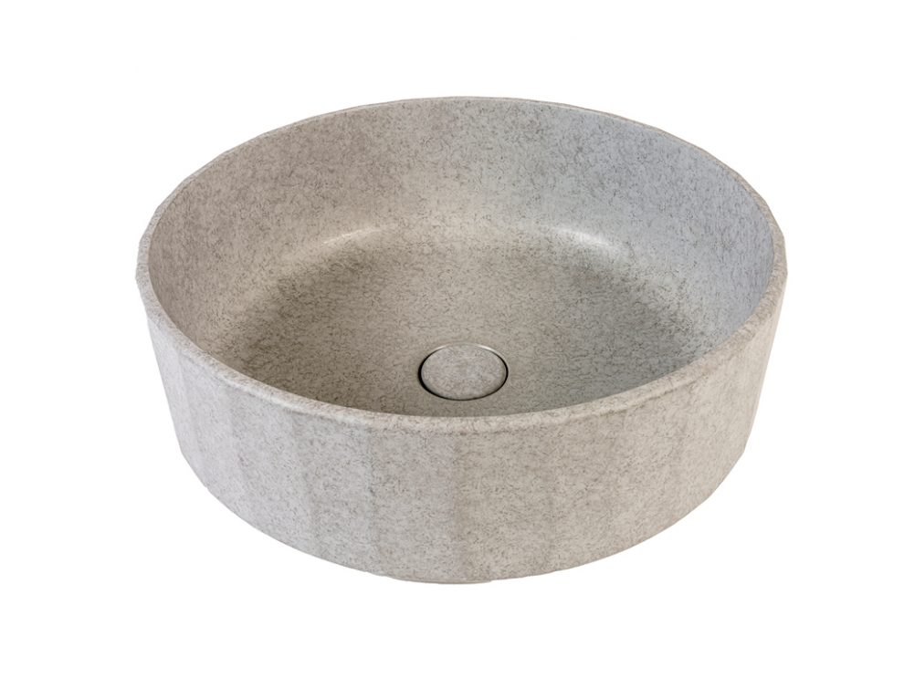 Il lavabo è disponibile in due varianti cromatiche naturali: Dark Grey (grigio scuro) e Smoke Grey (grigio chiaro), entrambe con piletta coordinata inclusa nello stesso materiale, per una resa visiva armoniosa e ricercata.