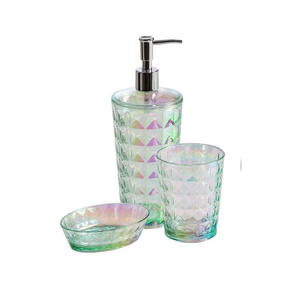 CIPI Set IRIDE PET decorato iridescente 3 pezzi: dispencer,bichhiere,portasapone