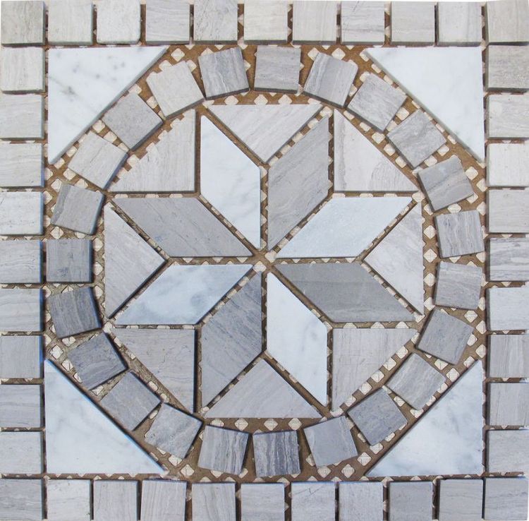 Rosoni realizzati in pezzi di pietra naturale montato su rete. Adatti alla realizzazione, sia all’interno che all’esterno. di complementi per pavimenti (anche riscaldanti), rivestimenti, docce (sia per il rivestimento delle pareti che come piatto doccia) e sauna.