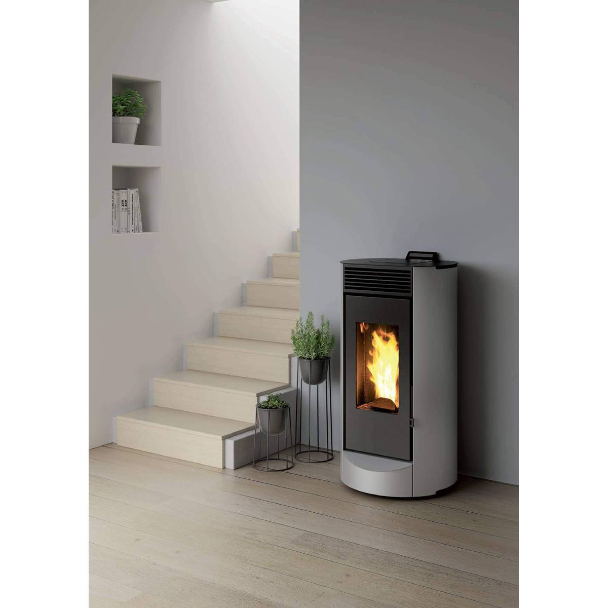 Il pannello comandi è reclinato per facilitare la lettura, mentre il funzionamento può essere gestito sia in modalità manuale sia tramite orologio di programmazione. La predisposizione al modulo Wi-Fi (opzionale) consente il controllo da remoto. Il design sobrio e compatto, unito alla possibilità di scegliere tra tre colorazioni, rende questa stufa adatta a ogni stile di arredamento.