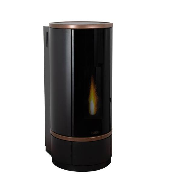 Dotata di design esclusivo con vetro arrotondato oscurato, fianchi e top in acciaio o cubicato, e struttura in acciaio corten, unisce estetica elegante e materiali di alta qualità. Lo scarico fumi Ø 80 mm posto superiormente garantisce un’installazione funzionale e discreta.
