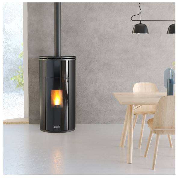 Stufa a pellet LAMINOX JESSICA SILENT 7 Air Black Line 7KW ad aria calda canalizzata, volume riscaldabile da 160 a 230 m³, rendimento 91,50 %.