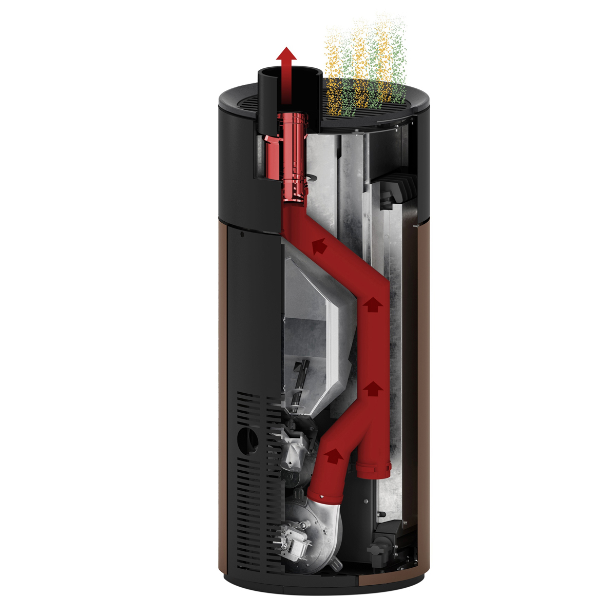 Il design compatto con finitura in acciaio verniciato antracite e rivestimento coordinato si adatta facilmente a diversi stili di arredamento. Il ventilatore superiore disattivabile consente un funzionamento silenzioso, mentre il braciere autopulente in microfusione e il sistema RDCS (Double Cleaning System) riducono al minimo la manutenzione, garantendo sempre un’ottima efficienza di combustione.